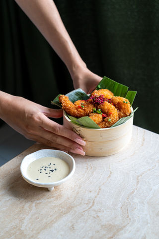 Dans un décor à la fois contemporain et chaleureux, la carte rend hommage aux grands classiques africains (mafé, thieboudienne, poisson braisé…) tout en leur faisant dialoguer avec des inspirations asiatiques (poké bowl, poulet karaage, crevettes crispy, croustillant feuille de riz…).